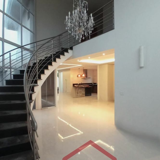 ✨ Sala ampla com três ambientes, iluminação em LED e porta pivotante em madeira nobre – perfeita para receber com estilo!