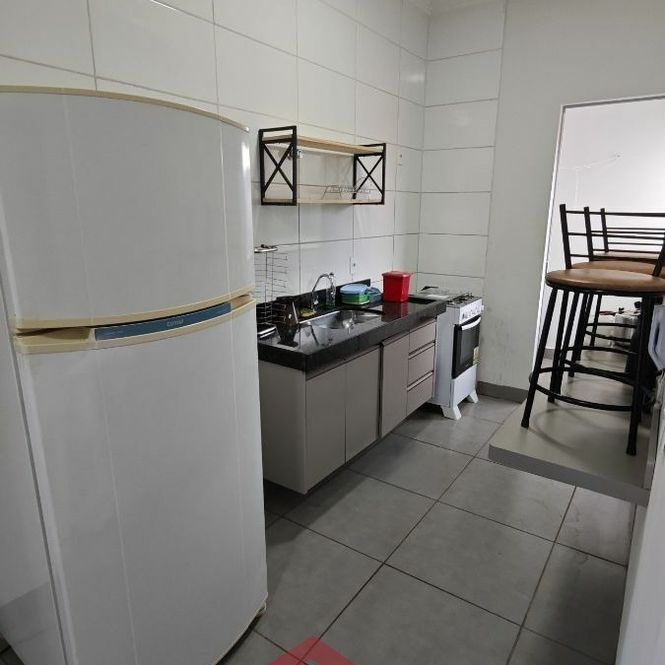 🍳 Cozinha equipada com geladeira, fogão, armários planejados e cadeiras – tudo pronto para você começar a viver!