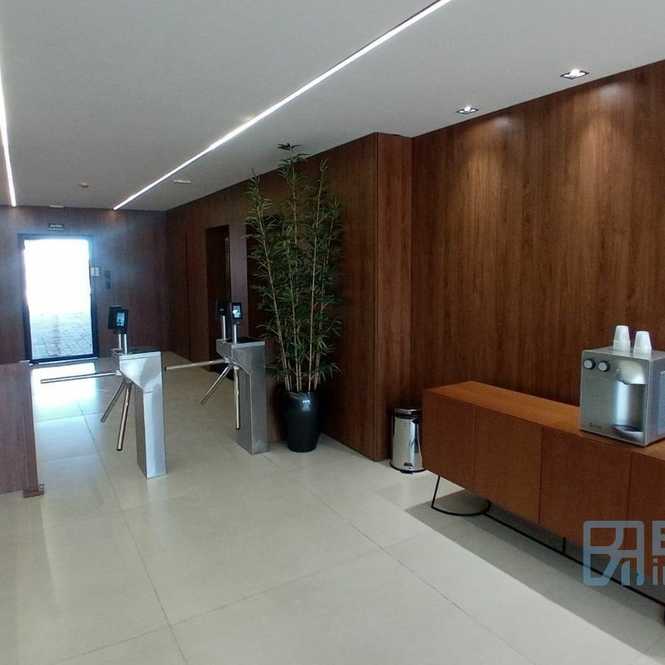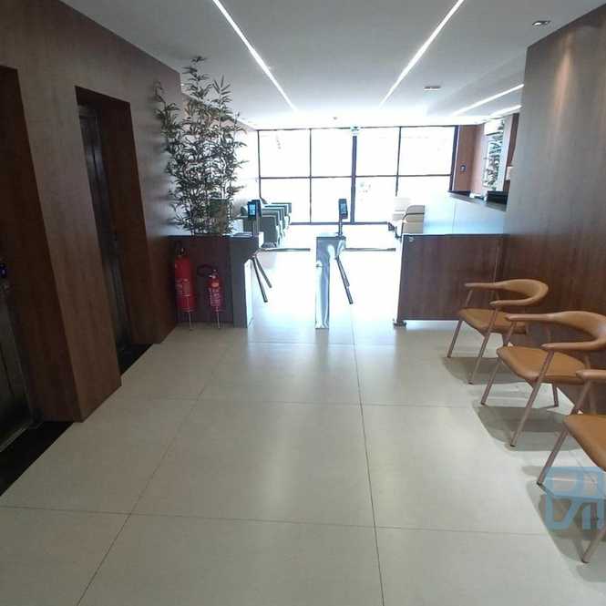 🏢 Lobby amplo, moderno e elegante, com recepção de alto padrão